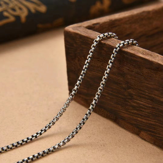2mm Round Box Chain S925 Silver Punk Sweater Necklace