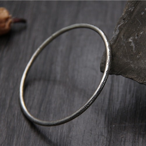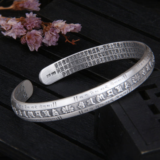 999 Silver Heart Sutra Bangle Retro Wisdom Open Cuff