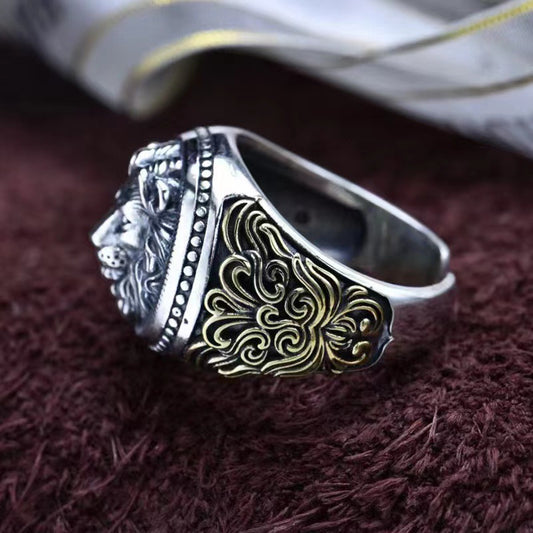Bold Lion Ring Sterling Silver Vintage Hip Hop